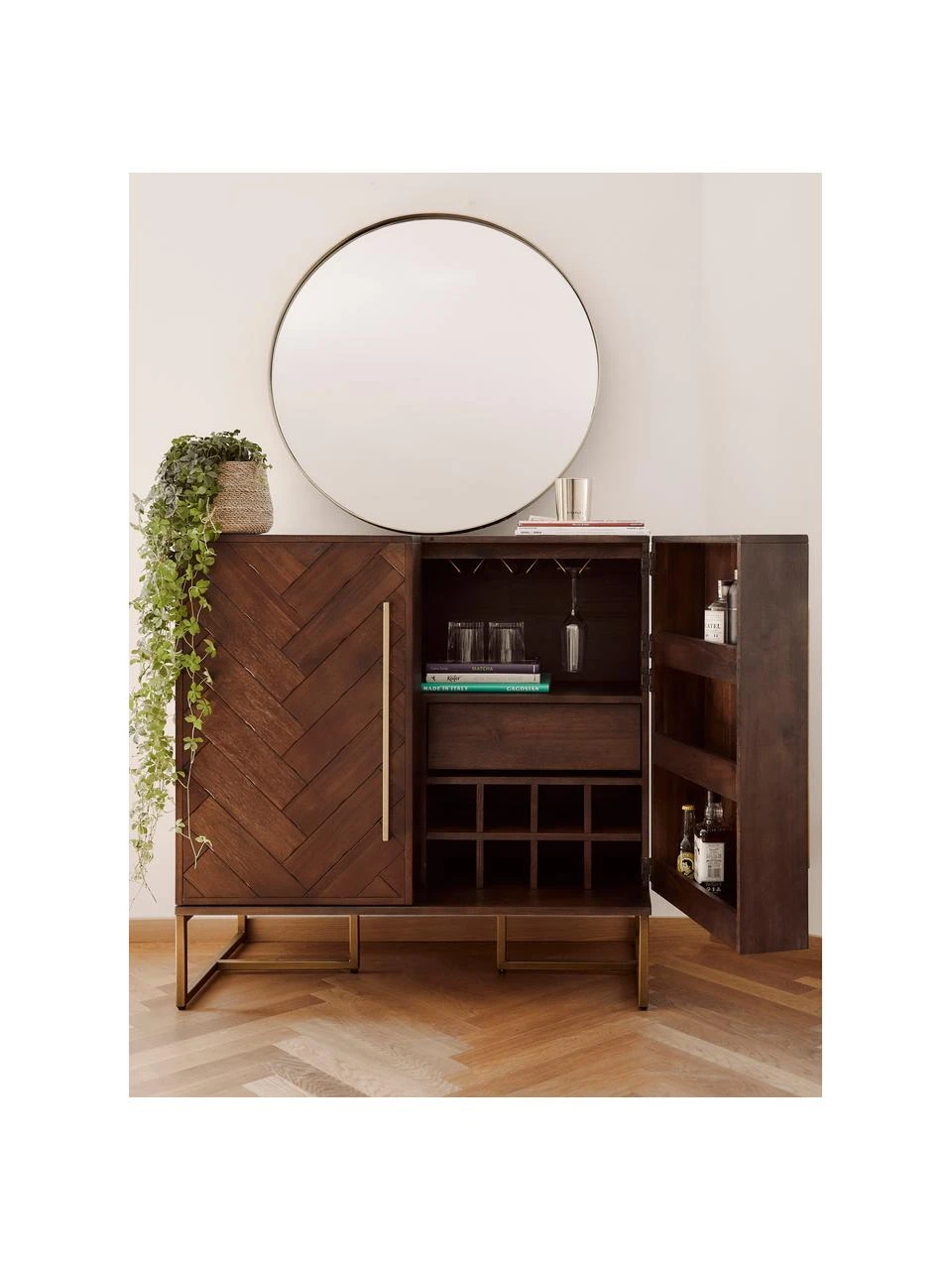 Dutchbone Fischgrät-Barschrank Class mit Akazienholzfurnier, B 100 x H 100 cm