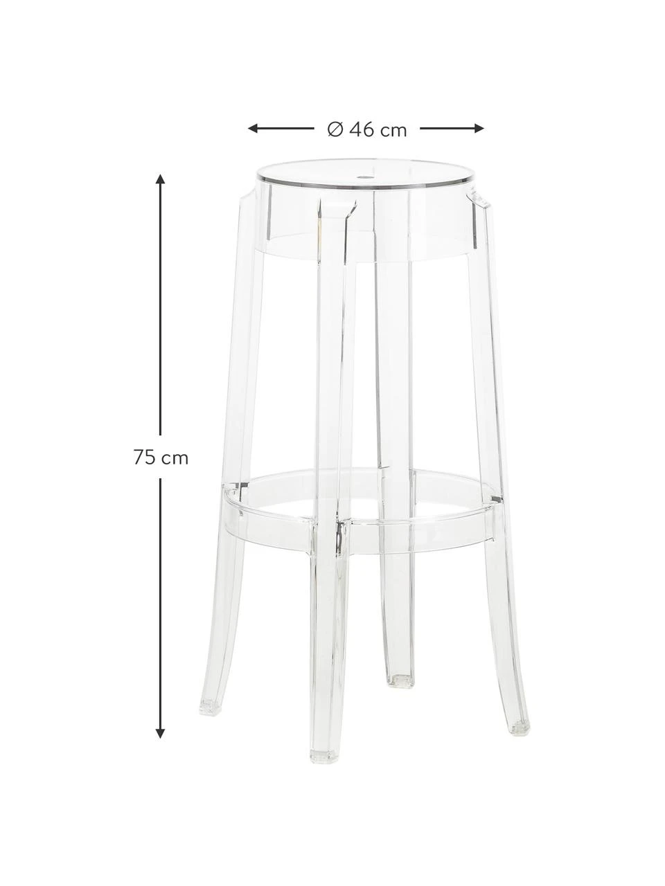 Charles Ghost ist der Hocker, der an die Form der Sitzflächen aus dem 19. Jahrhundert erinnert. Die Linie des Beines ist abgerundet und leicht gekräuselt, die Ikone des klassischen Hockers. Er ist in drei Höhen erhältlich: Vom Hocker für eine gelegentliche und informelle Sitzgelegenheit bis zum Hocker des Küchentisches oder der Bartheke. Er eignet sich für Indoor- und Outdoor-Bereiche.