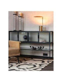 Dutchbone Schwarzes Sideboard Boli mit Rillenglas und Metallrahmen, B 150 x H 90 cm