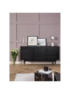 Rowico Schwarzes Sideboard Fenwood mit Schubladen mit Eichenholzfurnier, B 160 x H 79 cm