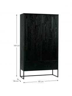 Dutchbone Schwarzes Sideboard Boli mit Rillenglas und Metallrahmen, B 150 x H 90 cm