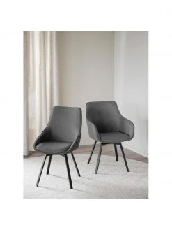 Rowico Gepolsterte Drehstühle Rossport in Grau mit Metall-Beinen, 2 Stück, B 52 x T 58 cm