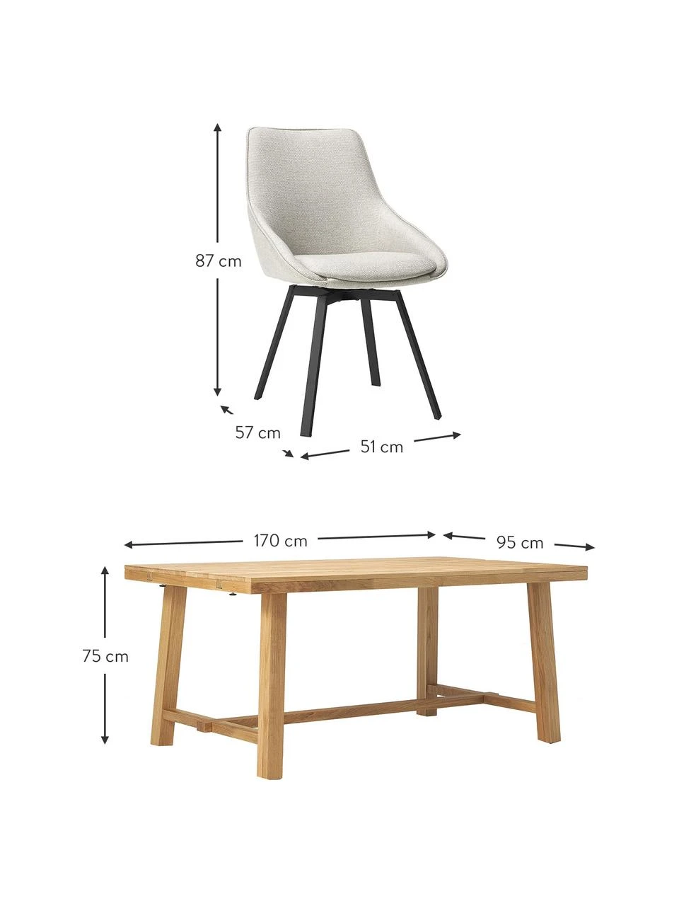– 5-tlg. Set bestehend aus verlängerbarem Esstisch und 4 Drehstühlen