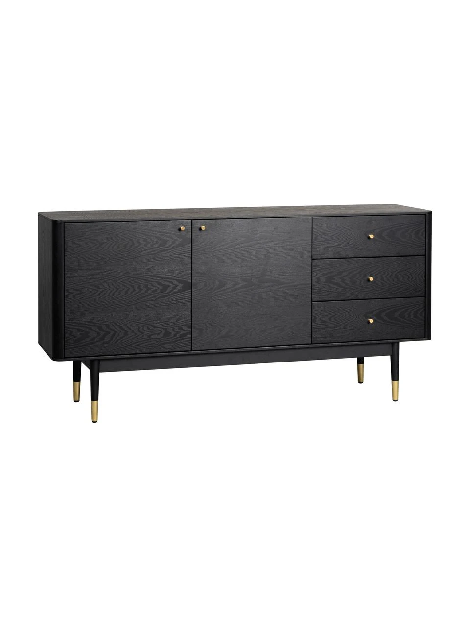 Rowico Schwarzes Sideboard Fenwood mit Schubladen mit Eichenholzfurnier, B 160 x H 79 cm