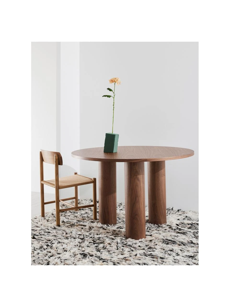 Der Esstisch wird platzsparend flach verpackt geliefert und benötigt als Montageaufwand das Anbringen des Tischbeins.