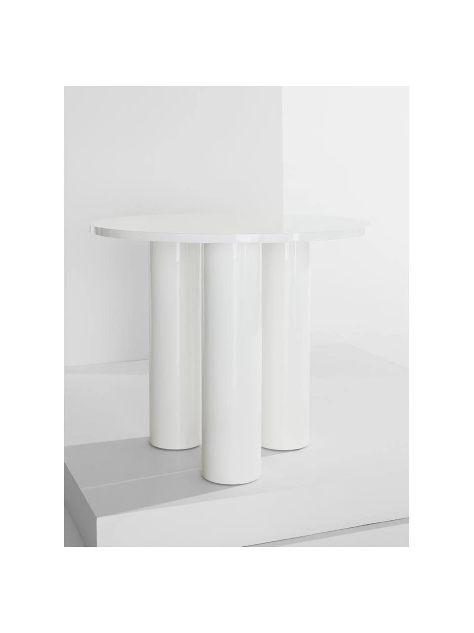 Der Esstisch wird platzsparend flach verpackt geliefert und benötigt als Montageaufwand das Anbringen des Tischbeins.
