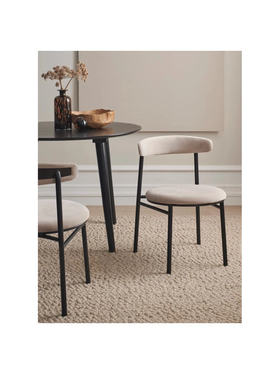 Samt-Polsterstühle Doggi in Cremefarben, 2 Stück, B 47 x T 50 cm