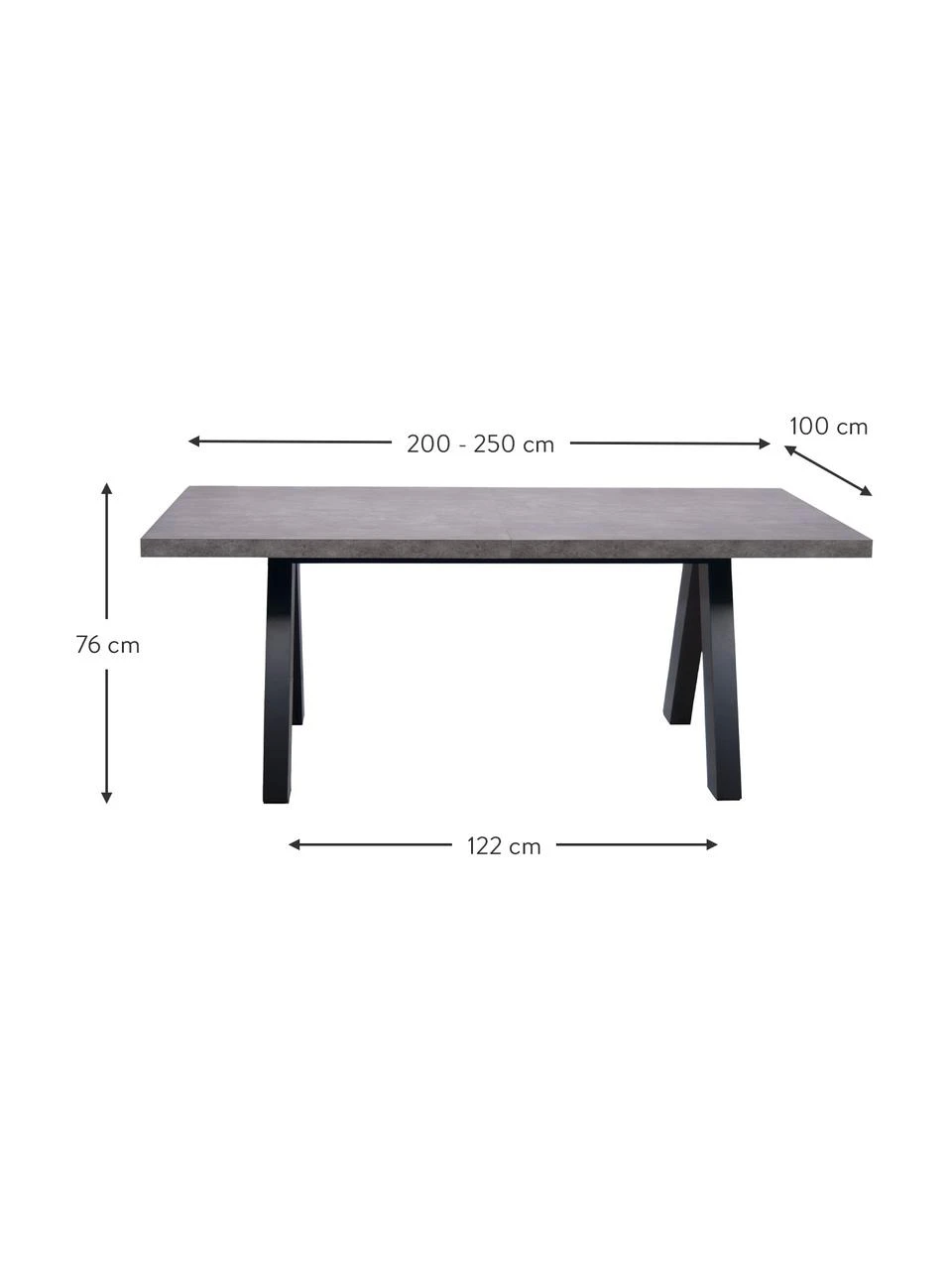 Abstand der Beine: B 122 cm