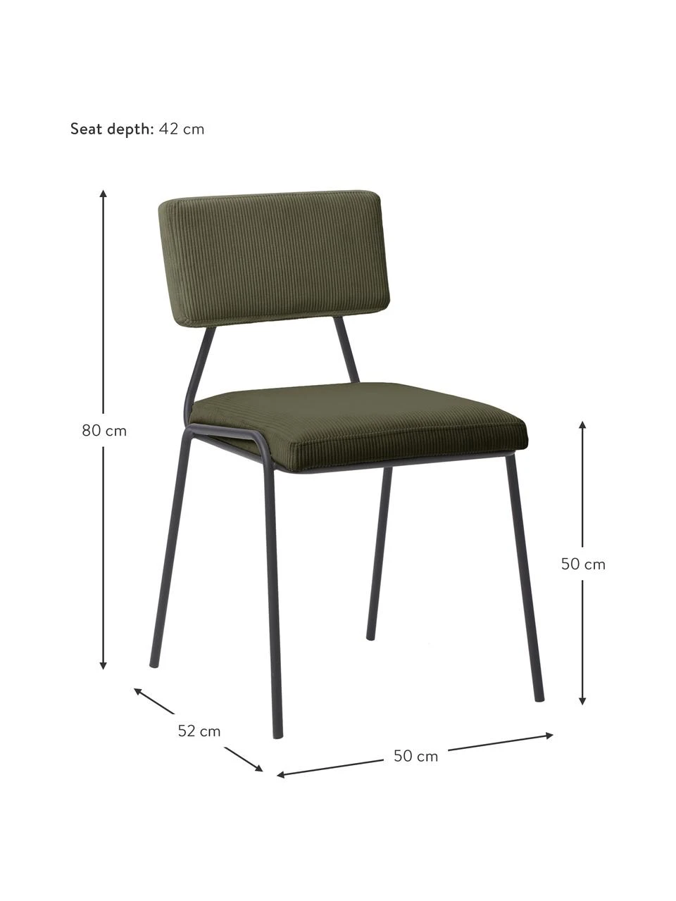 Westwing Collection Cord-Polsterstühle Mats in Grün, 2 Stück, B 50 x H 80 cm