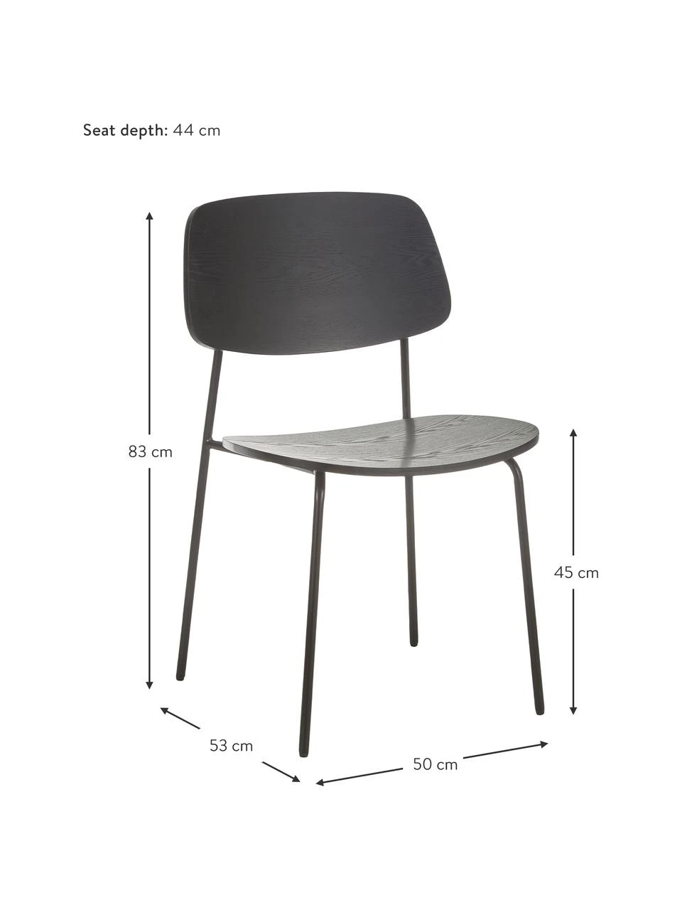 Sitzfläche: Eschenholzfurnier, Schwarz lackiert