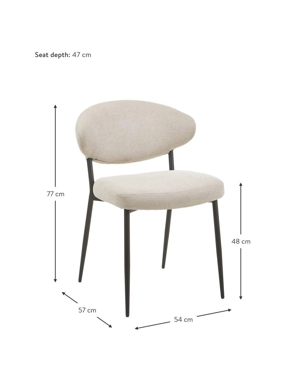Westwing Collection Polsterstühle Adele in Beige, 2 Stück, B 54 x T 57 cm