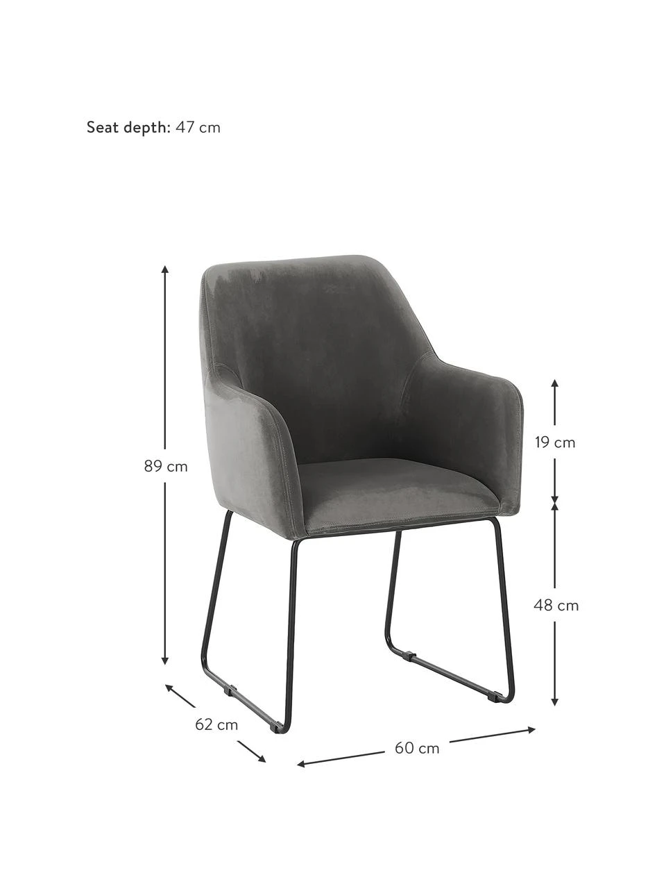 B 60 cm, H 89 cm, T 62 cm