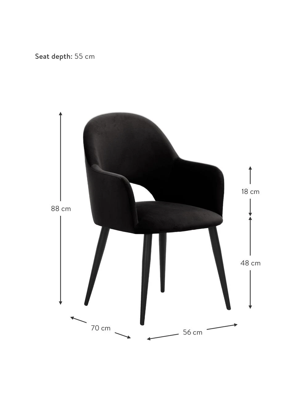 Westwing Collection Samt-Armlehnstuhl Rachel in Schwarz, B 56 x T 70 cm