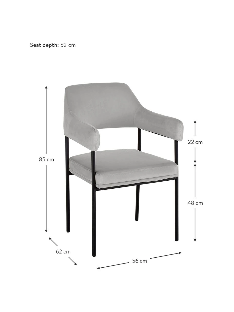 Westwing Collection Samt-Armlehnstuhl Zoe in Grau, B 56 x T 62 cmNur noch 1 Artikel verfügbar