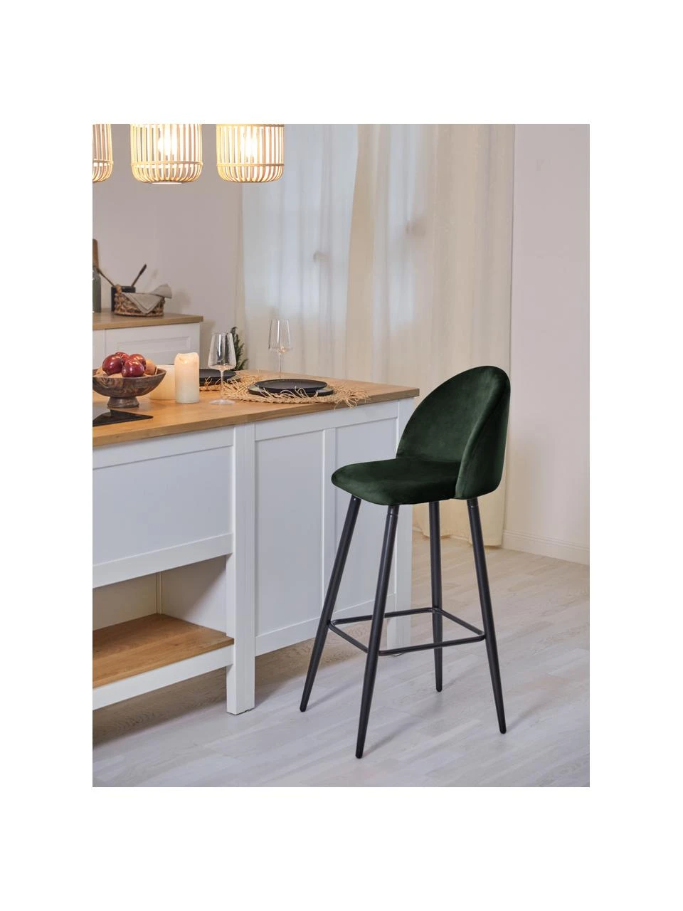 – Samt-Barstuhl mit Fußstütze
