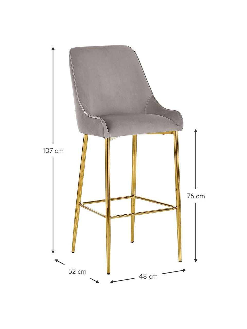 Westwing Collection Samt-Barstuhl Ava in Taupe, B 48 x H 107 cm