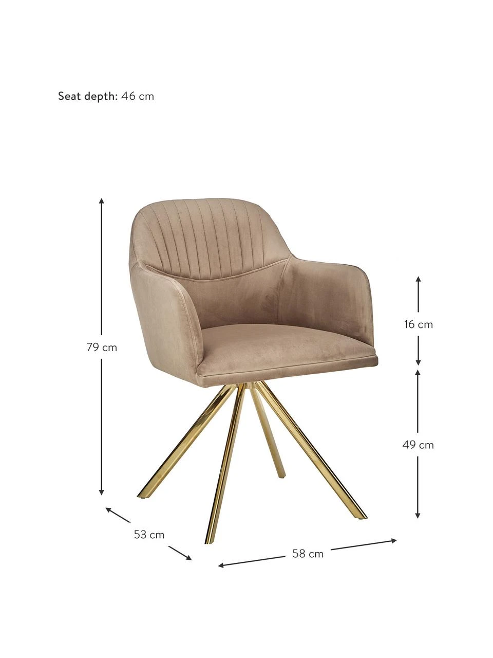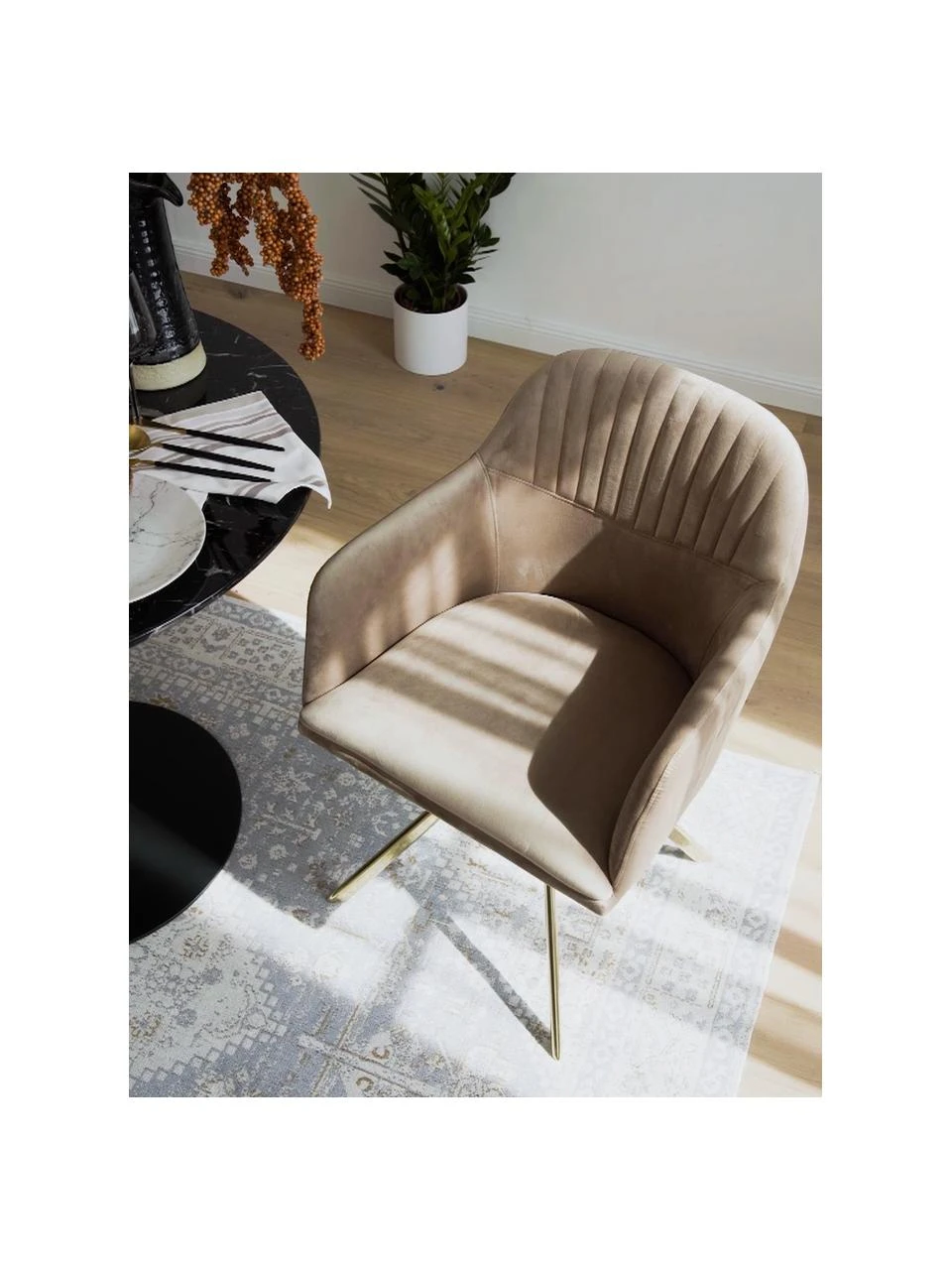 Westwing Collection Samt-Drehstuhl Lola mit Armlehne in Hellbraun, B 58 x T 53 cm