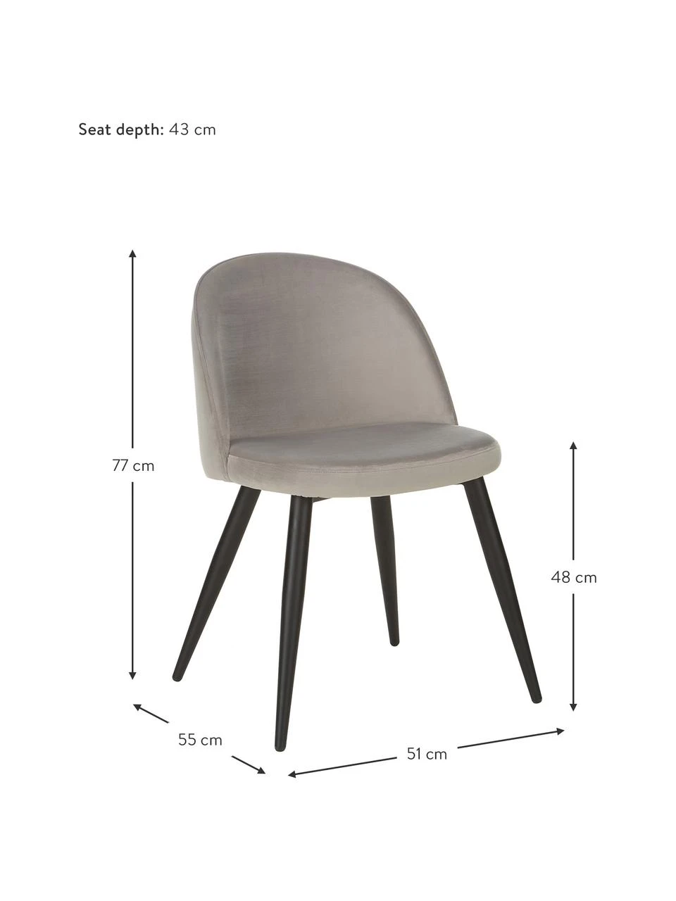 Westwing Collection Samt-Polsterstühle Amy in Grau, 2 Stück, B 51 x T 55 cm