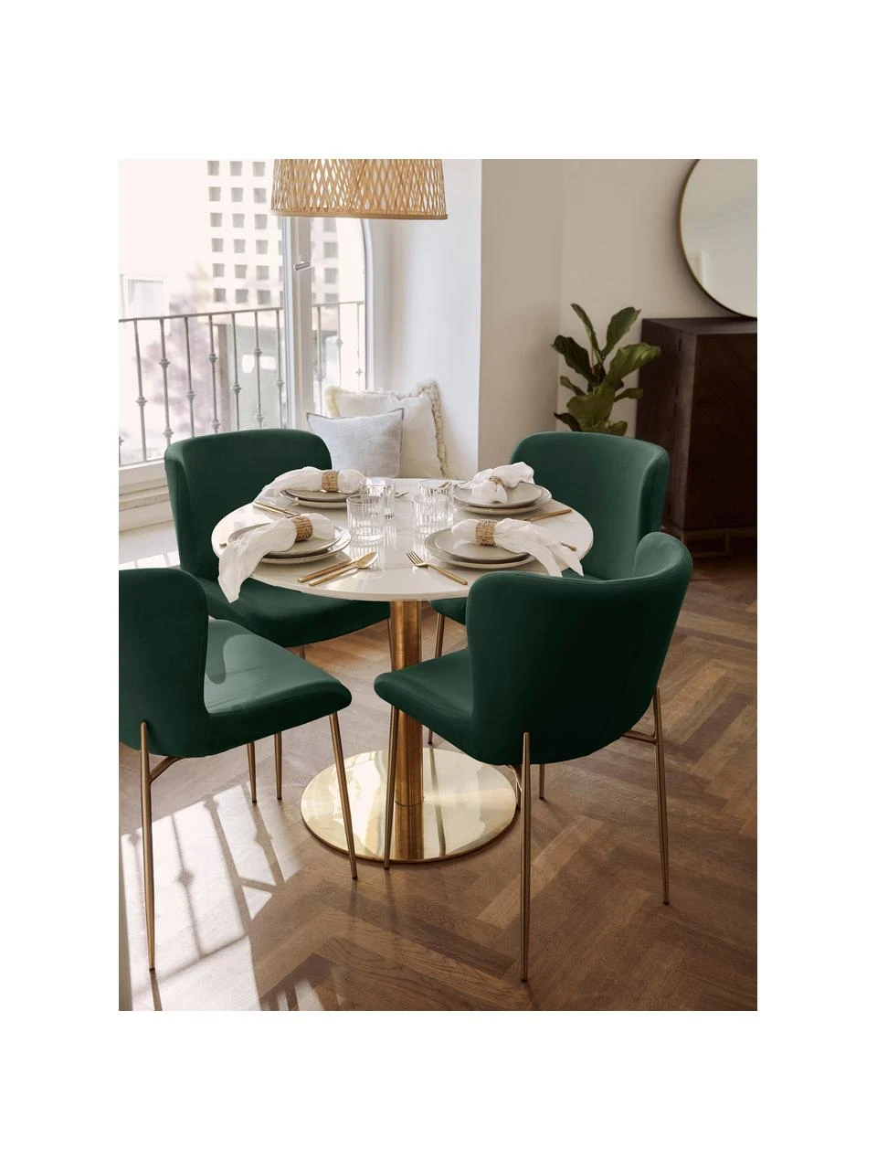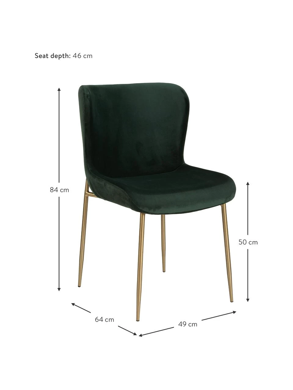 Westwing Collection Samt-Polsterstuhl Tess in Grün, B 49 x H 84 cm